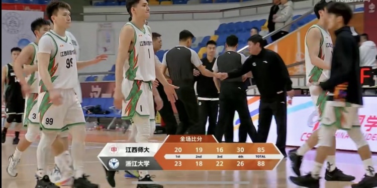 末节决战,浙江大学上来接连取分扩大领先,李佳辉抢到前场篮板打成2+1强势止血,双方展开拉锯战,张烜睿连续造杀伤帮助浙江大学始终保持十几分领先。史磊突破篮下打成,李佳辉三分再进追分,闵定康连续造杀伤再扔进三分追到仅剩3分。张烜睿抢到前场篮板补篮打成2+0止血,闵定康中投再进,但丁小峰关键前场篮板两罚全中还领先5分。韩鑫垚关键两罚全中,李佳辉三分不中,最终浙江大学89-85险胜江西师大。