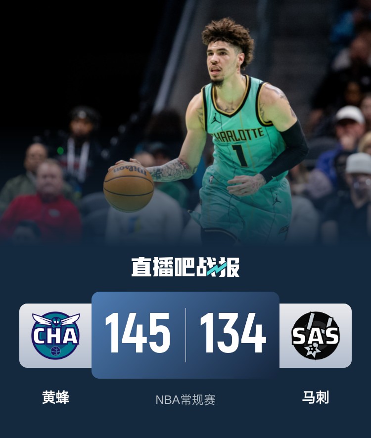 一开场,双方短暂相持,随后黄蜂内外开花取得两位数领先,次节黄蜂延续火力,连中三分一举将优势扩大到20分以上,马刺无力招架,不断冲击内线拿分苦苦支撑,半场战罢黄蜂轰进18记三分以81-55领先马刺。下半场,黄蜂依旧火力凶猛,内外开花保持大比分的领先,三节黄蜂射落24记三分,末节黄蜂没有给对手反扑的机会,轻松将优势保持到最后。最终,黄蜂客场轻取马刺。