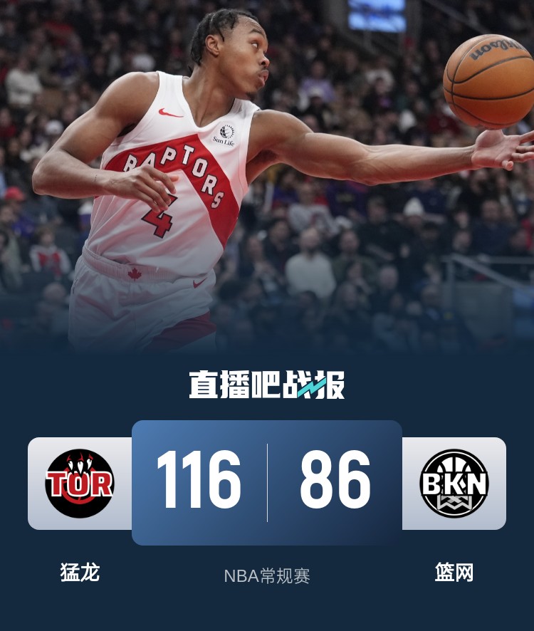 猛龙(26-47):罗宾逊23分12板3助、莫格博16分7板5助、巴恩斯15分7板5助、巴雷特15分6板5助、阿巴基12分8板2助、沃尔特11分2板6助、巴特尔8分10板、谢德7分5板8助3断、斯威德7分3板、劳森2分3板。