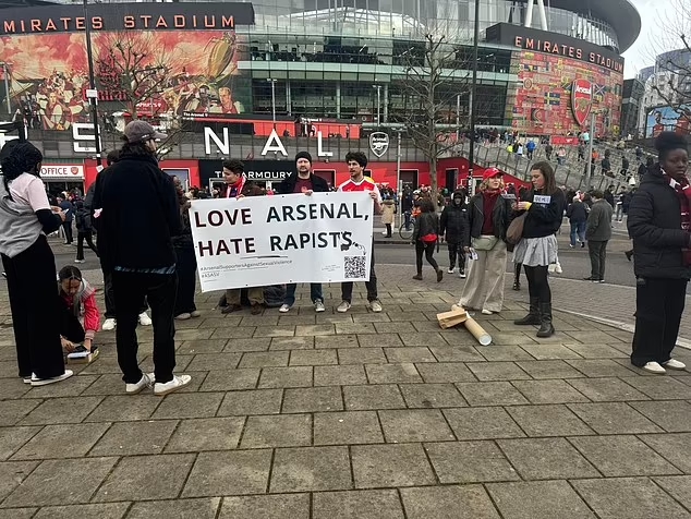 2月25日讯 《每日邮报》报道,在阿森纳和西汉姆的比赛前,有阿森纳球迷在球场外抗议强奸犯和性暴力。
