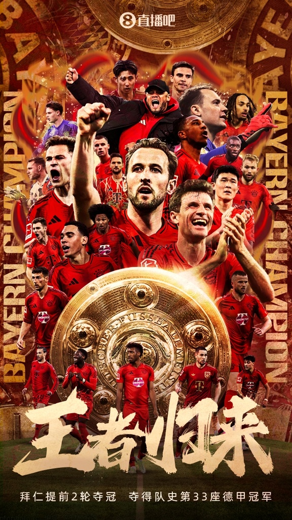拜仁德甲33冠夺冠赛季:(1968-69, 1971-72, 1972-73, 1973-74, 1979-80, 1980-81, 1984-85, 1985-86, 1986-87, 1988-89, 1989-90, 1993-94, 1996-97, 1998-99, 1999-00, 2000-01, 2002-03, 2004-05, 2005-06, 2007-08, 2009-10, 2012-13, 2013-14, 2014-15, 2015-16, 2016-17, 2017-18, 2018-19, 2019-20, 2020-21, 2021-22, 2022-23, 2024-25)