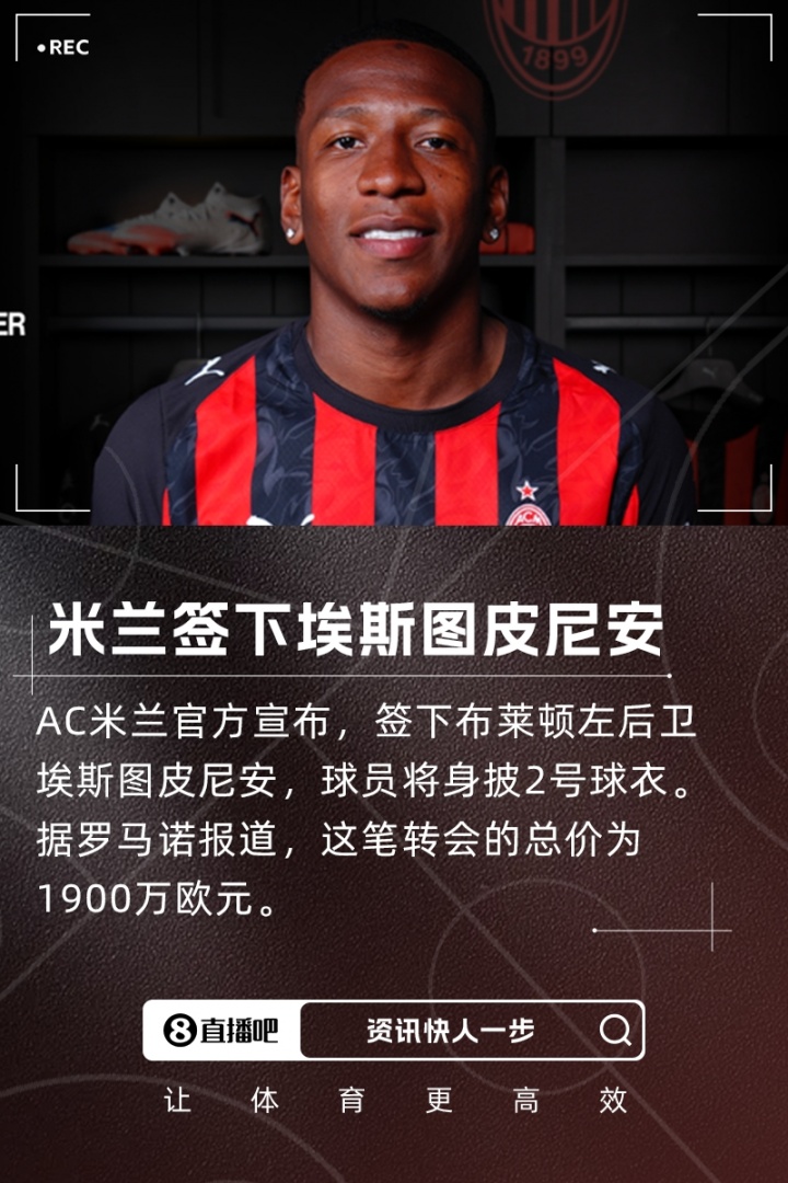 埃斯图皮尼安成为了AC米兰队史首位厄瓜多尔球员。据此前报道,埃斯图皮尼安的转会费为1700万欧固定,外加200万欧元浮动。